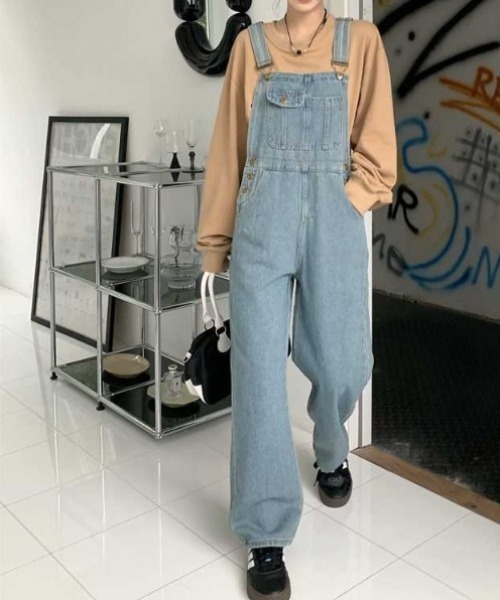 人気モデル登場 アシンメトリーデニムサロペット / オーバーオール アシメデザイン デニムサロペ オールインワン(サロペット/オーバーオール)|ISOOK(アイスー)